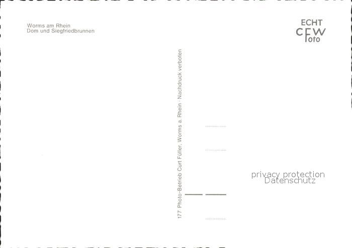 71951152 Worms Rhein Dom und Siegfriedbrunnen bei Nacht postalisch nicht gelaufen Erhaltung siehe scans KatCode: 11110007319000