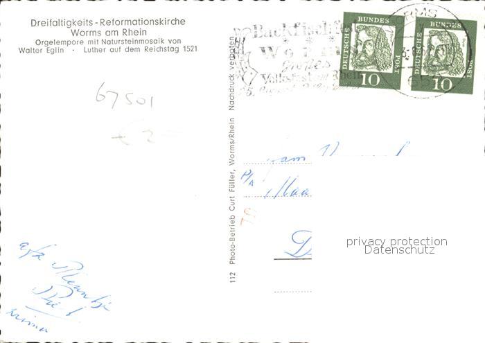 72408242 alte Postkarte Worms Rhein Dreifaltigkeits Reformationskirche Orgelempore postalisch gelaufen Erhaltung siehe scans KatCode: 11110007319000