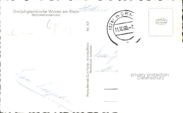 72406382 alte Postkarte Worms Rhein Dreifaltigkeitskirche postalisch gelaufen Erhaltung siehe scans KatCode: 11110007319000