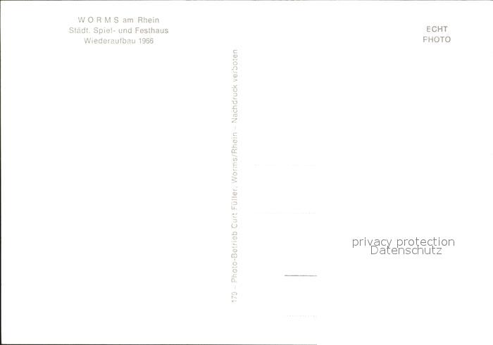 72093781 Worms Rhein Festhaus postalisch nicht gelaufen Erhaltung siehe scans KatCode: 11110007319000