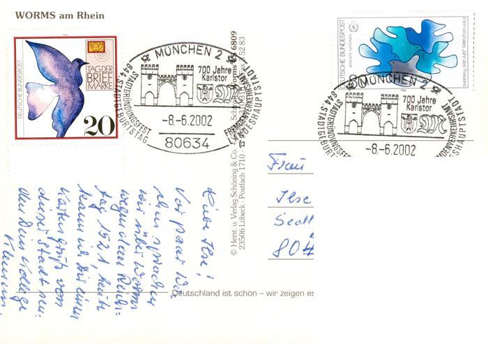 73879013 alte Postkarte Worms Rhein Fliegeraufnahme postalisch gelaufen Erhaltung siehe scans [WerneD78] KatCode: 11110007319000
