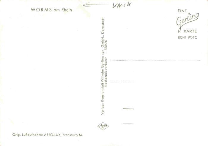 73975001 WORMS Rhein Fliegeraufnahme postalisch nicht gelaufen Erhaltung siehe scans [WerneD78] KatCode: 11110007319000