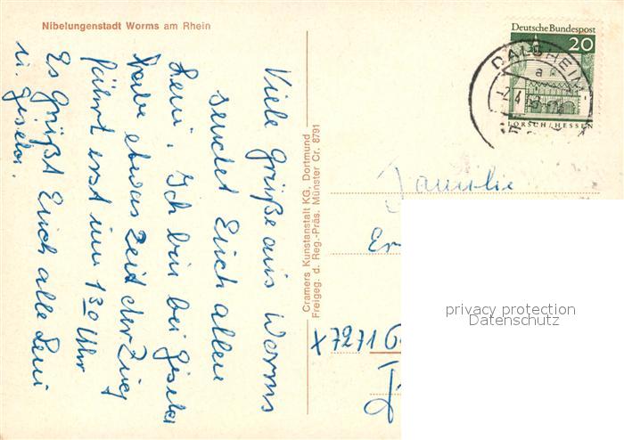 73165652 alte Postkarte Worms Rhein Fliegeraufnahme postalisch gelaufen Erhaltung siehe scans [WerneD78] KatCode: 11110007319000