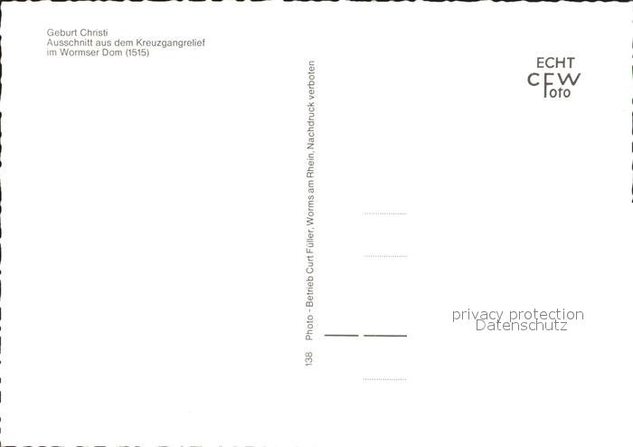 72347652 Worms Rhein Geburt Christi Ausschnitt aus dem Kreuzgangrelief im Dom postalisch nicht gelaufen Erhaltung siehe scans KatCode: 11110007319000