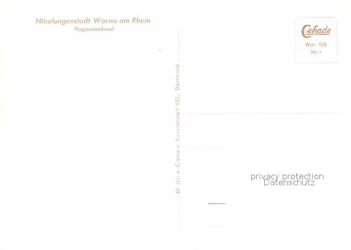 72761350 Worms Rhein Hagendenkmal postalisch nicht gelaufen Erhaltung siehe scans [WerneD78] KatCode: 11110007319000