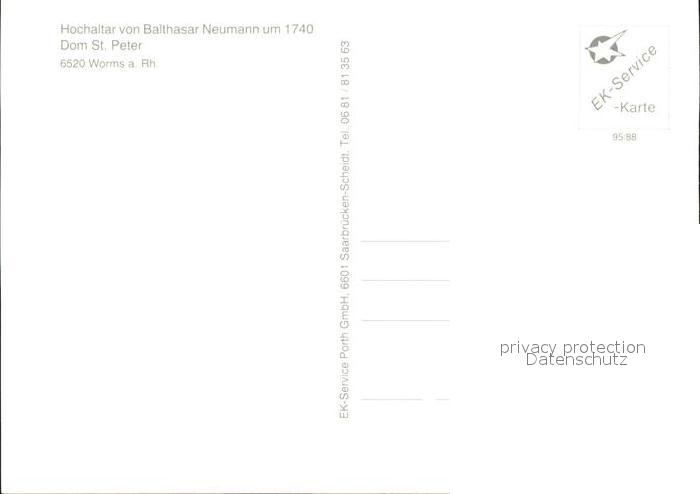 72519223 Worms Rhein Hochalter Balthasar Neumann Dom Sankt Peter postalisch nicht gelaufen Erhaltung siehe scans KatCode: 11110007319000