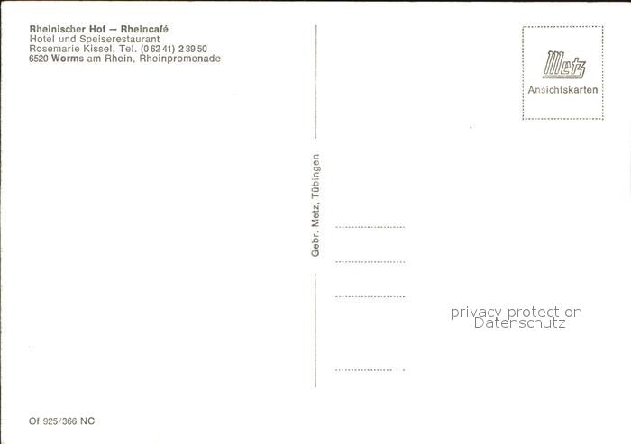 72525779 Worms Rhein Hotel Restaurant Rheinischer Hof Fachwerkhaus Rheinpromenade postalisch nicht gelaufen Erhaltung siehe scans KatCode: 11110007319000