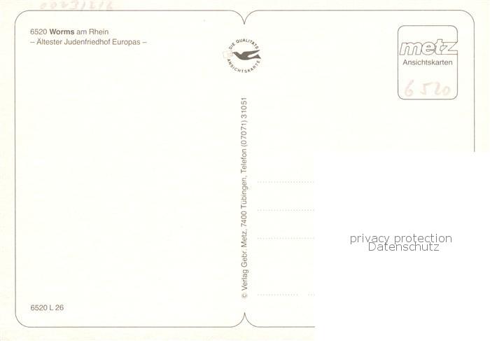 73868363 Worms Rhein Juedischer Friedhof postalisch nicht gelaufen Erhaltung siehe scans [WerneD78] KatCode: 11110007319000