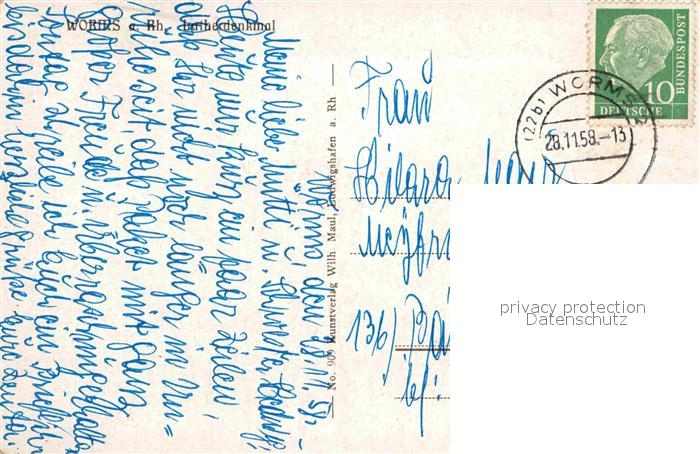 72826733 alte Postkarte Worms Rhein Lutherdenkmal postalisch gelaufen Erhaltung siehe scans [LiesaD40] KatCode: 11110007319000