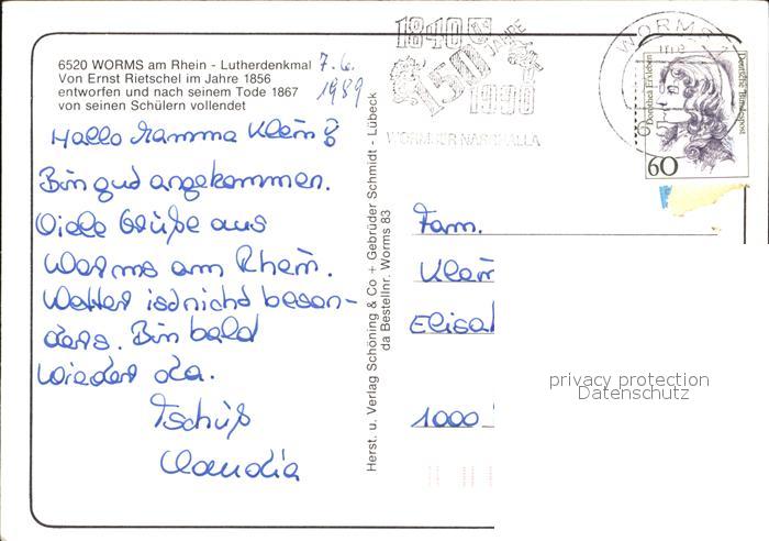 72410899 alte Postkarte Worms Rhein Lutherdenkmal postalisch gelaufen Erhaltung siehe scans KatCode: 11110007319000