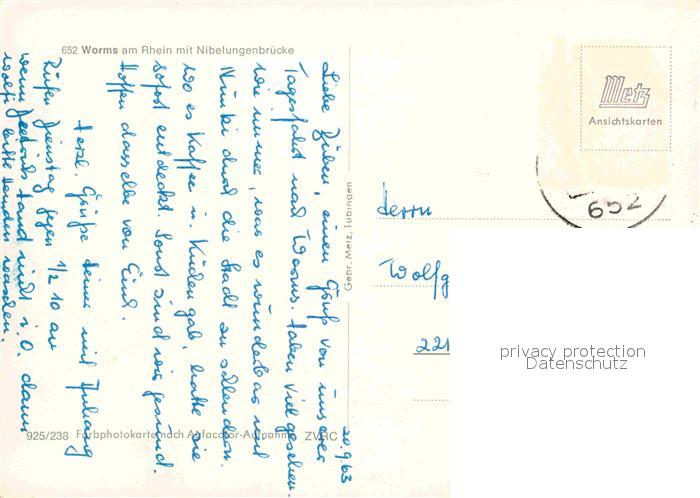 72757928 alte Postkarte Worms Rhein Nibelungenbruecke postalisch gelaufen Erhaltung siehe scans [NatalD47] KatCode: 11110007319000
