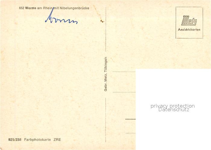 72992305 Worms Rhein Nibelungenbruecke postalisch nicht gelaufen Erhaltung siehe scans [WerneD78] KatCode: 11110007319000