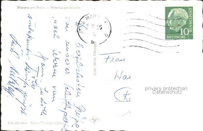72405192 alte Postkarte Worms Rhein Niebelungenbruecke postalisch gelaufen Erhaltung siehe scans KatCode: 11110007319000