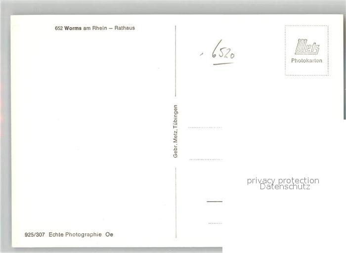 43353810 Worms Rhein Rathaus postalisch nicht gelaufen Erhaltung siehe scans [FriedD77] KatCode: 11110007319000