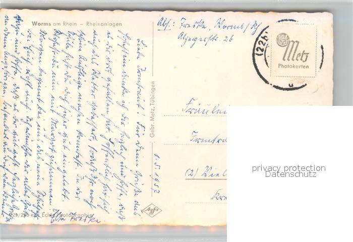 43496762 alte Postkarte Worms Rhein Rheinanlagen postalisch gelaufen Erhaltung siehe scans [KathaD81] KatCode: 11110007319000