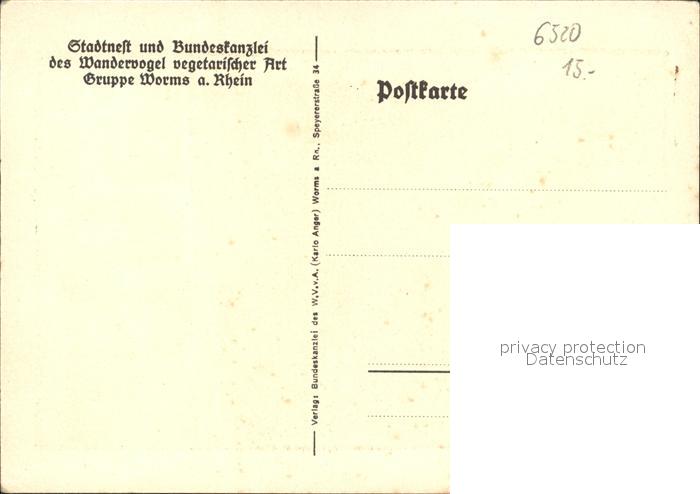 72132622 Worms Rhein Stadtnest und Bundeskanzlei Zeichnung postalisch nicht gelaufen Erhaltung siehe scans KatCode: 11110007319000