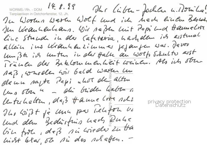 72771166 alte Postkarte Worms Rhein Tierplastiken im Ostchorfenster postalisch gelaufen Erhaltung siehe scans [WerneD78] KatCode: 11110007319000