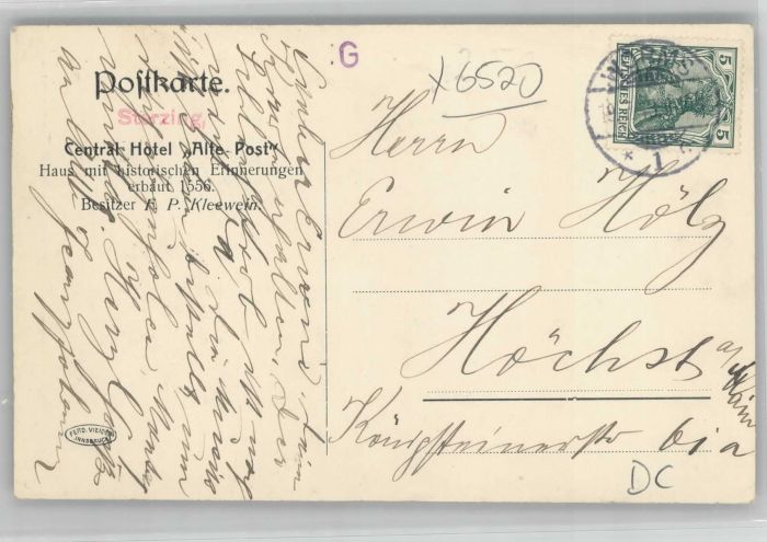 40677541 Worms [Stempelabschlag] Central-Hotel Alte Post KatCode 11110007319000