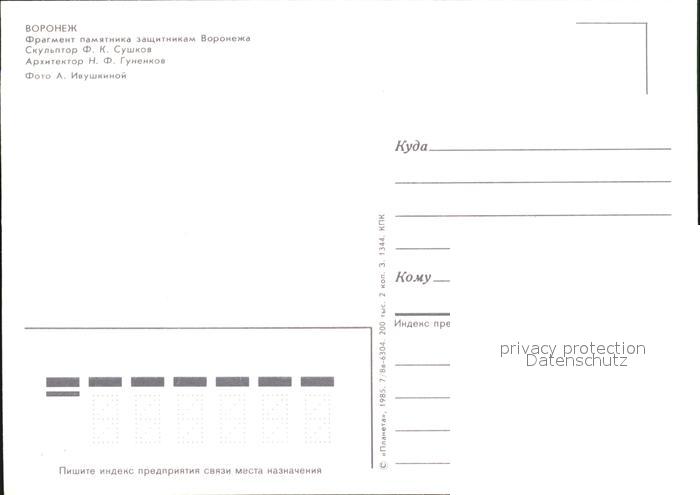 Woronesch Denkmal postalisch nicht gelaufen Erhaltung siehe scans [KathaD79]