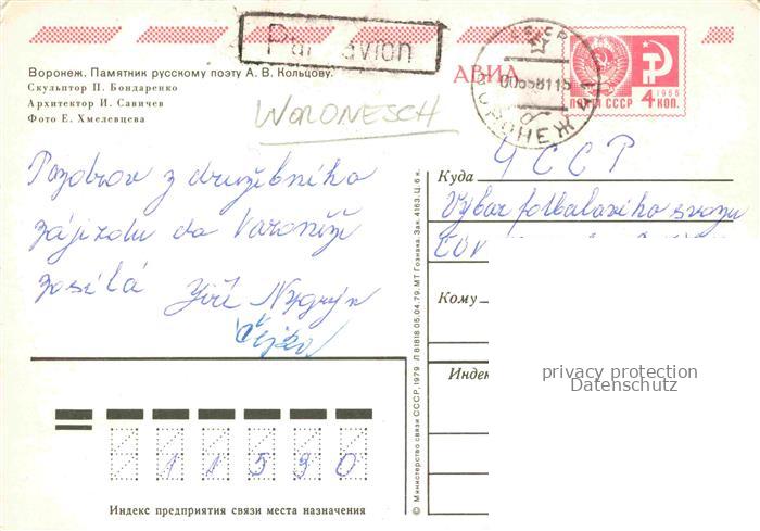 74153136 old postcard Woronesch RU Skulptur postalisch gelaufen Erhaltung siehe scans [WerneD78] KatCode: 11440