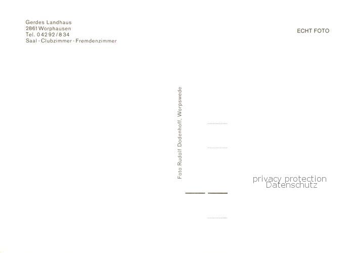 73793358 Worphausen Lilienthal Gerdes Landhaus Aussenansicht postalisch nicht gelaufen Erhaltung siehe scans [LiesaD40] KatCode: 11110003356005