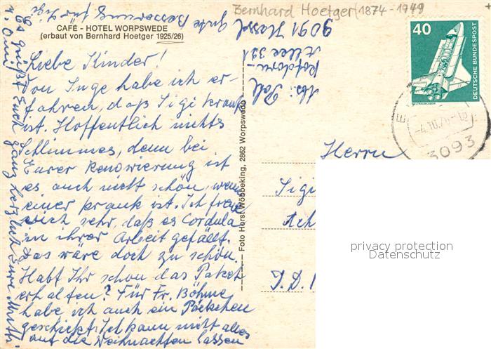73116068 alte Postkarte Worpswede Cafe Hotel postalisch gelaufen Erhaltung siehe scans [KathaD81] KatCode: 11110003356011