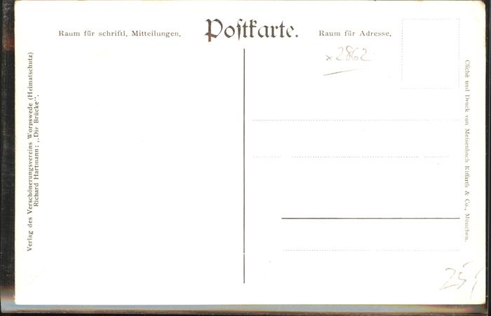 41391007 Worpswede Fluss mit Boot und Brücke Künstlerkarte KatCode 11110003356011