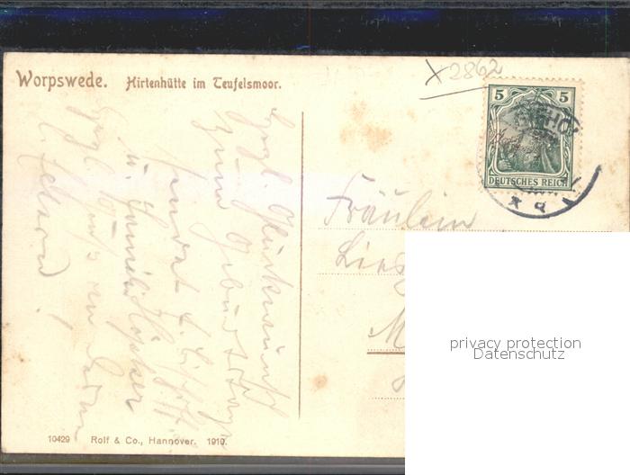 42169133 alte Postkarte Worpswede Hirtenhuette postalisch gelaufen Erhaltung siehe scans KatCode: 11110003356011