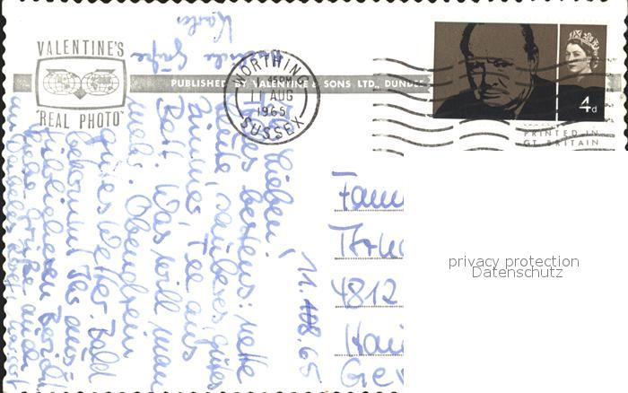 old postcard Worthing West Sussex Warnes Hotel and Beach postalisch gelaufen Erhaltung siehe scans