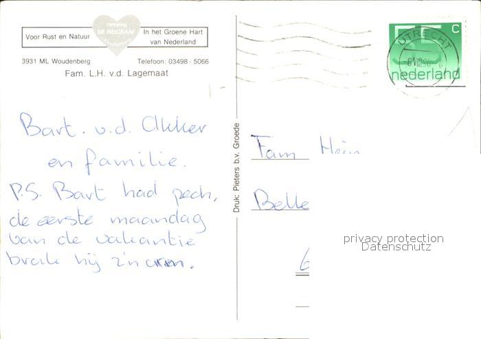 old postcard Woudenberg Ferienzentrum De Heigraaf Zeltplatz Minizoo postalisch gelaufen Erhaltung siehe scans