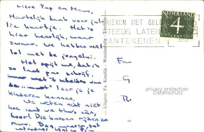 alte Postkarte Woudenberg Zandvijver Heygraaf postalisch gelaufen Erhaltung siehe scans