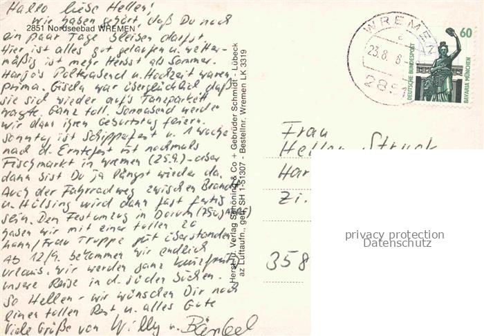74042674 Wremen Cuxhaven Niedersachsen Panorama Nordseebad postalisch gelaufen Fliegeraufnahme Erhaltung siehe scans [FriedD77] Fliegeraufnahme alte Postkarte Frie Katcode 11110003352057