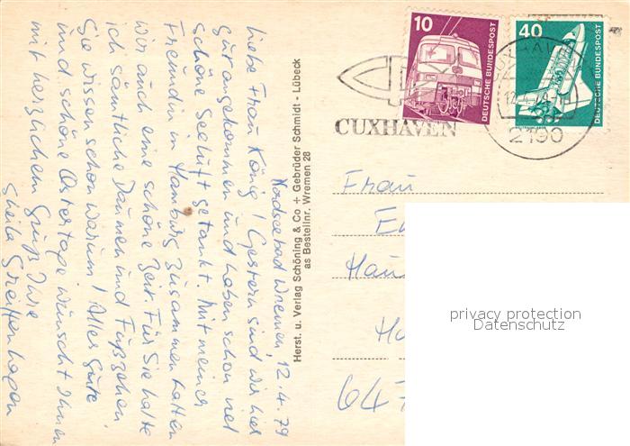 73263692 alte Postkarte Wremen Hafen Pferde Kirche Camping postalisch gelaufen Erhaltung siehe scans [LiesaD40] KatCode: 11110003352057