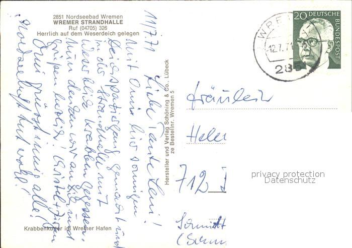 71991645 alte Postkarte Wremen Hafen Strandhalle postalisch gelaufen KatCode: 11110003352057