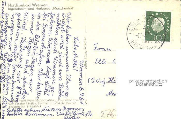 31705777 alte Postkarte Wremen Jugendheim und Herberge Marschenhof Fliegeraufnahme postalisch gelaufen Erhaltung siehe scans KatCode: 11110003352057