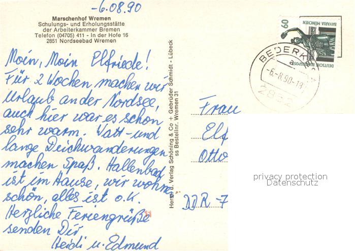 73648535 alte Postkarte Wremen Marschenhof Wremen Fliegeraufnahme Gastraeume Hallenbad Gaestezimmer Kegelbahn postalisch gelaufen Erhaltung siehe scans [WerneD78] KatCode: 11110003352057