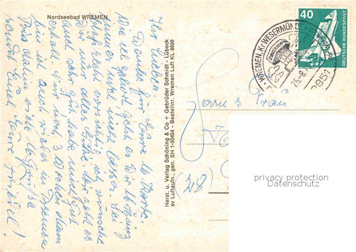 72781082 alte Postkarte Wremen Nordseebad Fliegeraufnahme postalisch gelaufen Erhaltung siehe scans [FriedD77] KatCode: 11110003352057