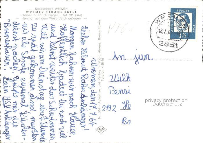 72059283 alte Postkarte Wremen Nordseebad Strandhalle postalisch gelaufen Erhaltung siehe scans KatCode: 11110003352057