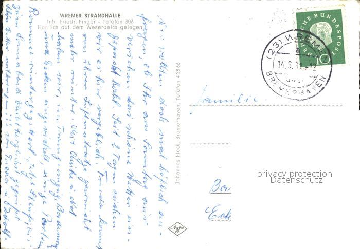 72409457 alte Postkarte Wremen Strandhalle postalisch gelaufen Erhaltung siehe scans KatCode: 11110003352057