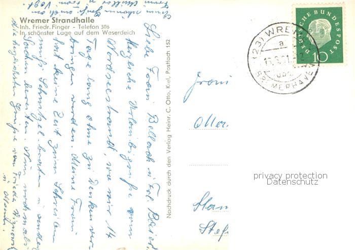 73762938 alte Postkarte Wremen Strandhalle Badesteg Strandleben Campingplatz postalisch gelaufen Erhaltung siehe scans [FriedD77] KatCode: 11110003352057