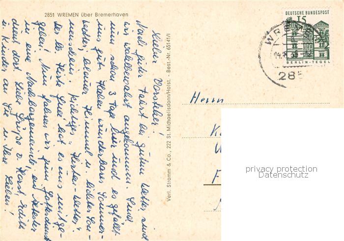 73830425 alte Postkarte Wremen Strandhotel Fischereihafen Campingplatz postalisch gelaufen Erhaltung siehe scans [WerneD78] KatCode: 11110003352057