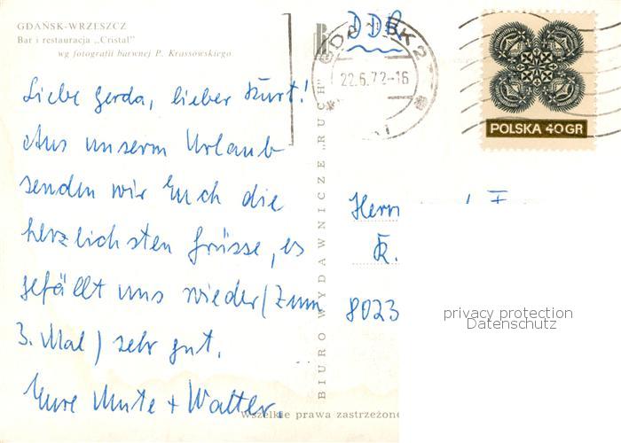 old postcard Wrzeszcz Gdansk Bar restauracia Cristal postalisch gelaufen Erhaltung siehe scans [FriedD77]