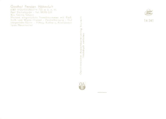 73869865 Wuelfersreuth Bischofsgruen Gasthof Pension Hoehenluft Gaststube Panorama postalisch nicht gelaufen Erhaltung siehe scans [FriedD77] KatCode: 11110009472121