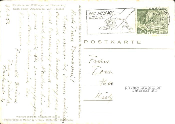 11655766 alte Postkarte Wuelflingen Winterthur Dorfpartie mit Kirche und Beatenberg postalisch gelaufen Erhaltung siehe scans KatCode: 11470260915546