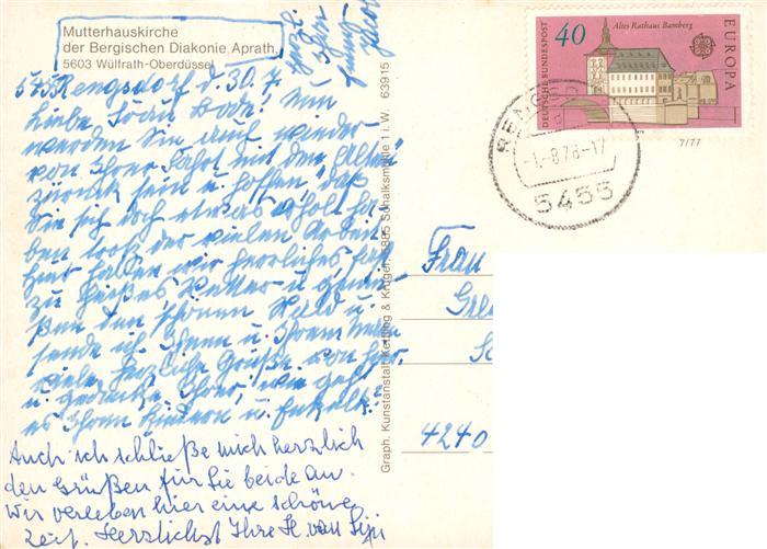 73943405 alte Postkarte Wuelfrath Mutterhauskirche der Bergischen Diakonie Aprath postalisch gelaufen Erhaltung siehe scans [WerneD78] KatCode: 11110005158036