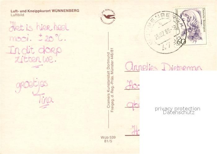73132247 alte Postkarte Wuennenberg Fliegeraufnahme postalisch gelaufen Erhaltung siehe scans [KathaD81] KatCode: 11110005774040