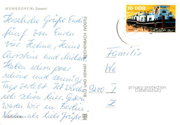 73034110 alte Postkarte Wuensdorf Kirche Strand Gasthaus postalisch gelaufen Erhaltung siehe scans [KathaD81] KatCode: 11110012072477