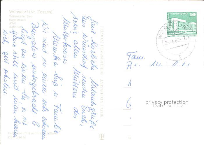 72383014 alte Postkarte Wuensdorf Strand AWG Bahnhof postalisch gelaufen Erhaltung siehe scans KatCode: 11110012072477