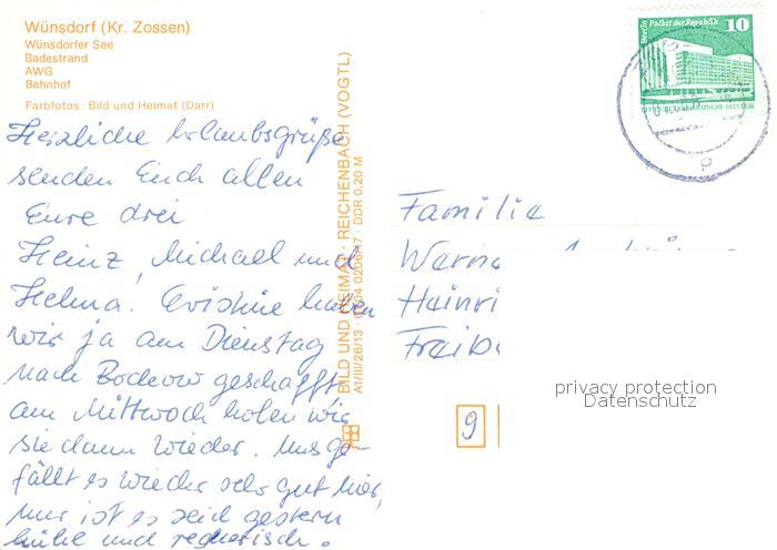 73014771 alte Postkarte Wuensdorf Wuensdorfer See Badestrand AWG Bahnhof postalisch gelaufen Erhaltung siehe scans [WerneD78] KatCode: 11110012072477