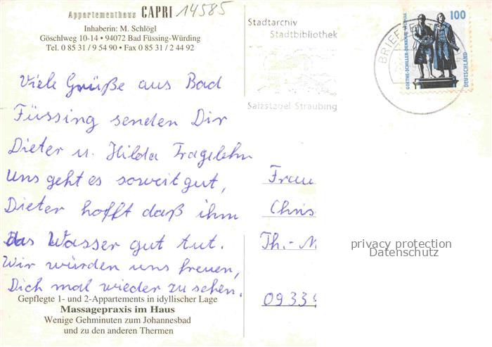 74043773 alte Postkarte Wuerding Bad Fuessing Appartementhaus Capri postalisch gelaufen Erhaltung siehe scans [FriedD77] KatCode: 11110009275116